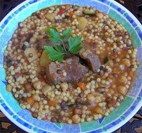 1 n tebṣelt tameqqrant – 3 n tfenza n ticcert – 1 lkas n 150 ml de n leɛdes – 1 n tedgert n zrudiya – 1 n texsayt taleqqaqt – 1 n tbaṭaṭat lɛali – 1 n tedgert n lleft – lkas n lḥemmez – 2 à 3 tomates râpées – 1 n tɣenjawt n ṭumaṭic yeẓdan – lmelḥ, filfel aberkan d teḥcict
