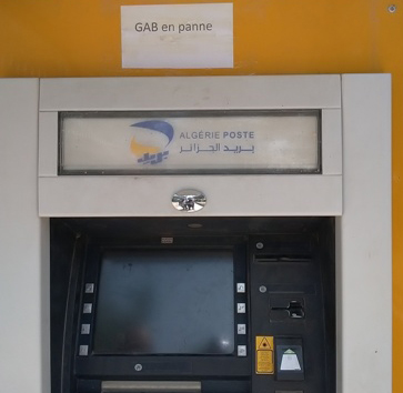 En effet, deux jours avant la fête de l’Aid El Fitr, cette machine affichait » hors service ». Quelques jours après, les clients d’Algérie-poste et les détenteurs de cartes bancaires découvrent que l’écran est entièrement éteint. Ces derniers jours, une affichette « GAB en panne » est collée sur l’appareil.
